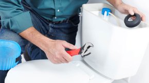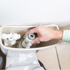 - Если вода набирается до необходимого уровня и отключается, но при этом продолжает течь в унитаз после смыва — поломка сливного механизма.